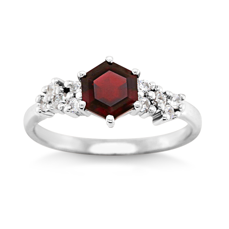 12x .02ct Diamond, 1x (7x6mm) Octagon Garnet