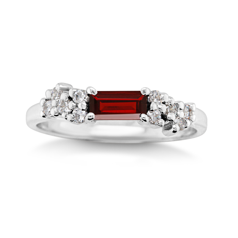 10x .02ct Diamond, 1x (6x3mm) Baguette Garnet