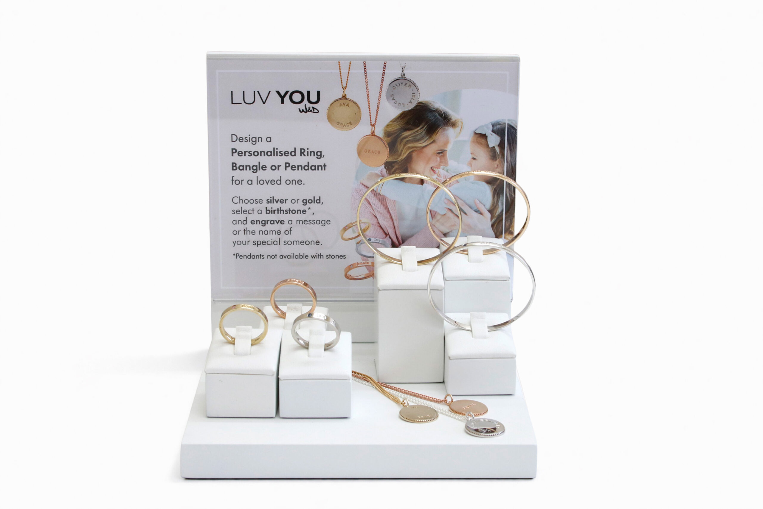 & PENDANTS), BANGLES, LUV YOU FULL SAMPLE SET ( 3 x RINGS
